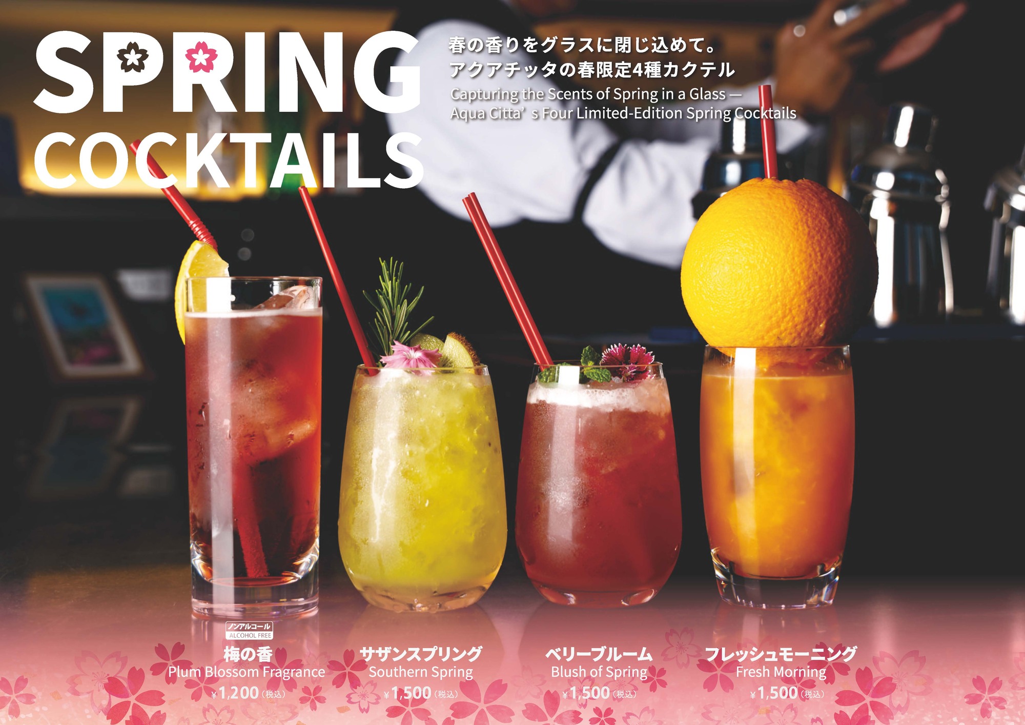 春の訪れを感じる4種のカクテルが揃いました。