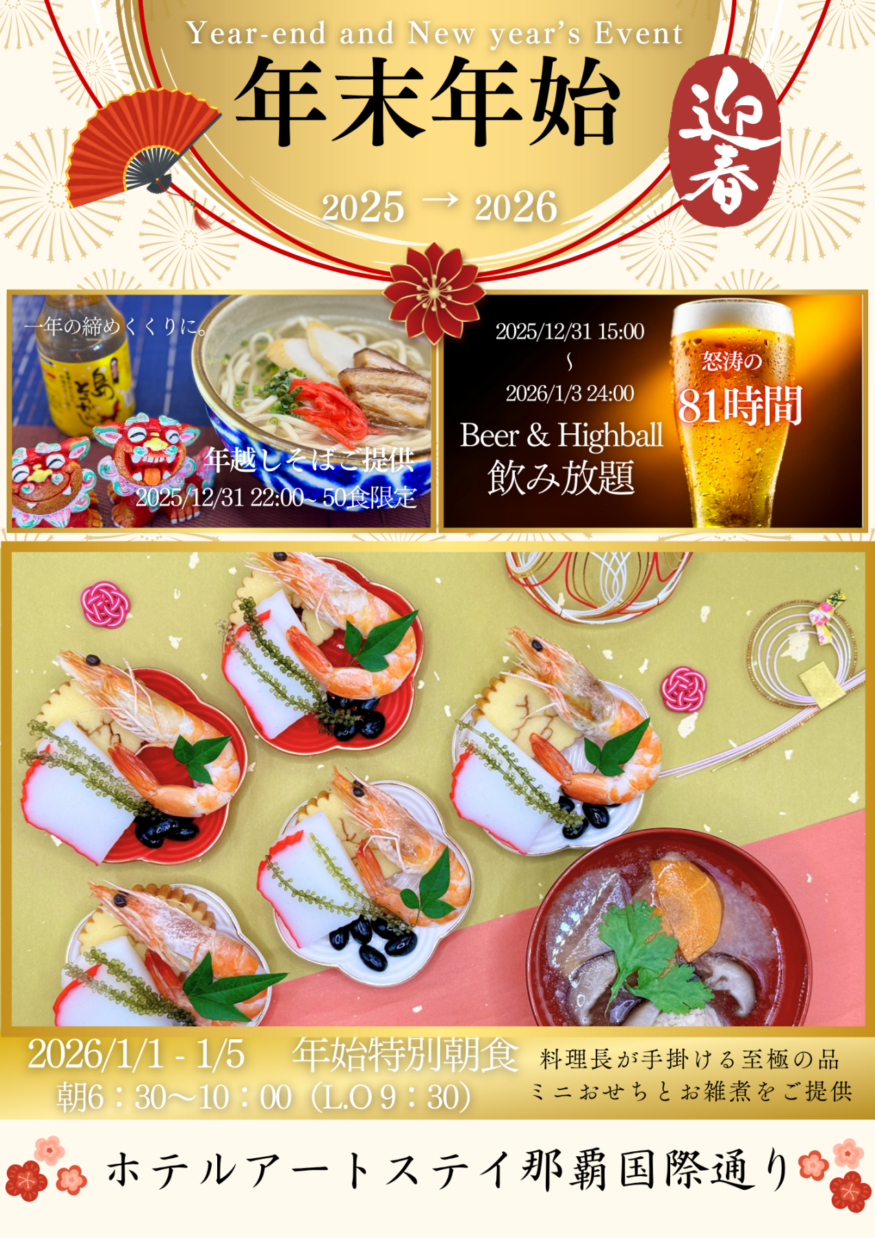 新しい年の幕開けを、ホテルアートステイ那覇国際通りでゆったりとお迎えください。