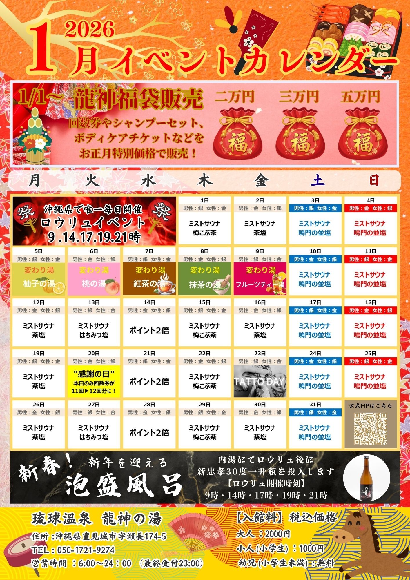| Inquiry | Ryukyu Onsen Ryujin hot spring TEL: 81(0)98-851-7167(direct line) |